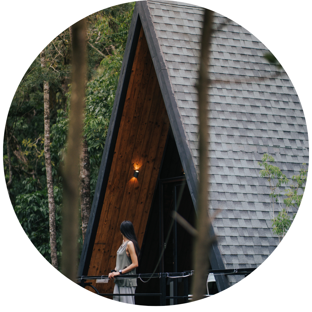 We offer a variety of accommodations, including Domes, A-frame cottages, Vintage houses, and the unique Mirror house.